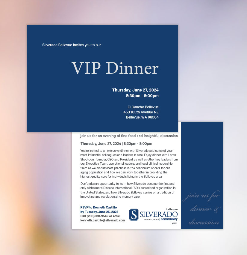 Memory Care Community Information Rack CardOutlines the memory care services provided at Silverado’s community.